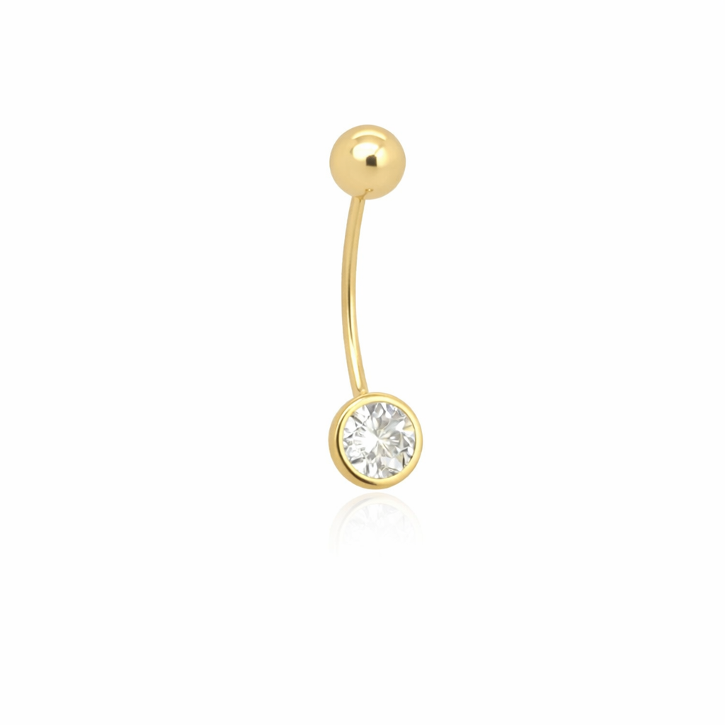 14K Belly Piercing Plain Thick Bezel Round CZ
