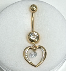 14K Belly Piercing  Round Full Bezel with Plain Dangling Open Heart with CZ in Middle