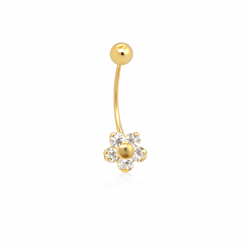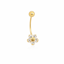 14K Belly Piercing Bezeled Flower with CZ