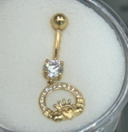 14K Belly Piercing CZ with Dangling Open Circle with Heart Sitting on the Bottom