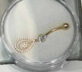 14K Belly Piercing Round CZ with 3 Dangling Open Tear Drop with CZ