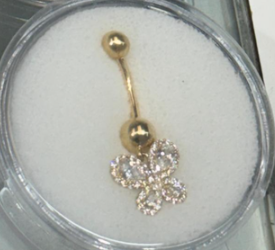 14K Belly Piercing Plain Gold Ball with Dangling CZ Butterfly