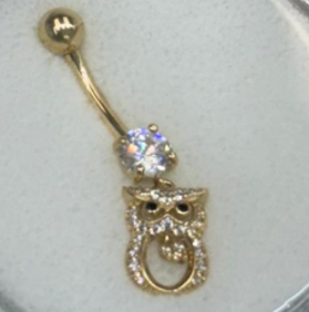 14K Belly Piercing Dangling Open Owl with Cz