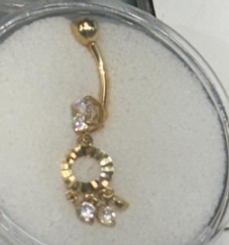 14K Belly Piercing Round CZ with Dangling Plain D-Cut Open Circle with dandling Round Bezels CZ