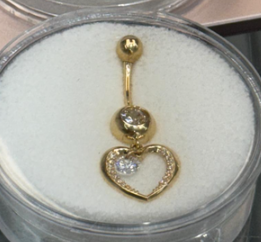 14K Belly Piercing Plain Dangling open Heart with One CZ