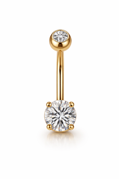 14K Belly Piercing with CZ On The Top and Bottom