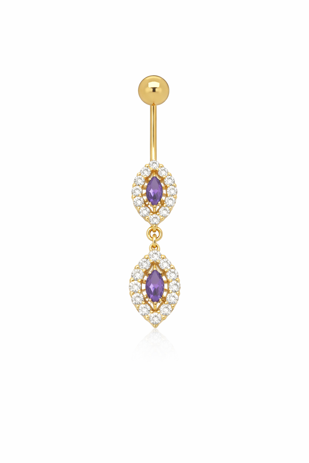14K Belly Piercing Oval CZ Bezeled Amethyst with Dangling Oval CZ Bezeled Amethyst
