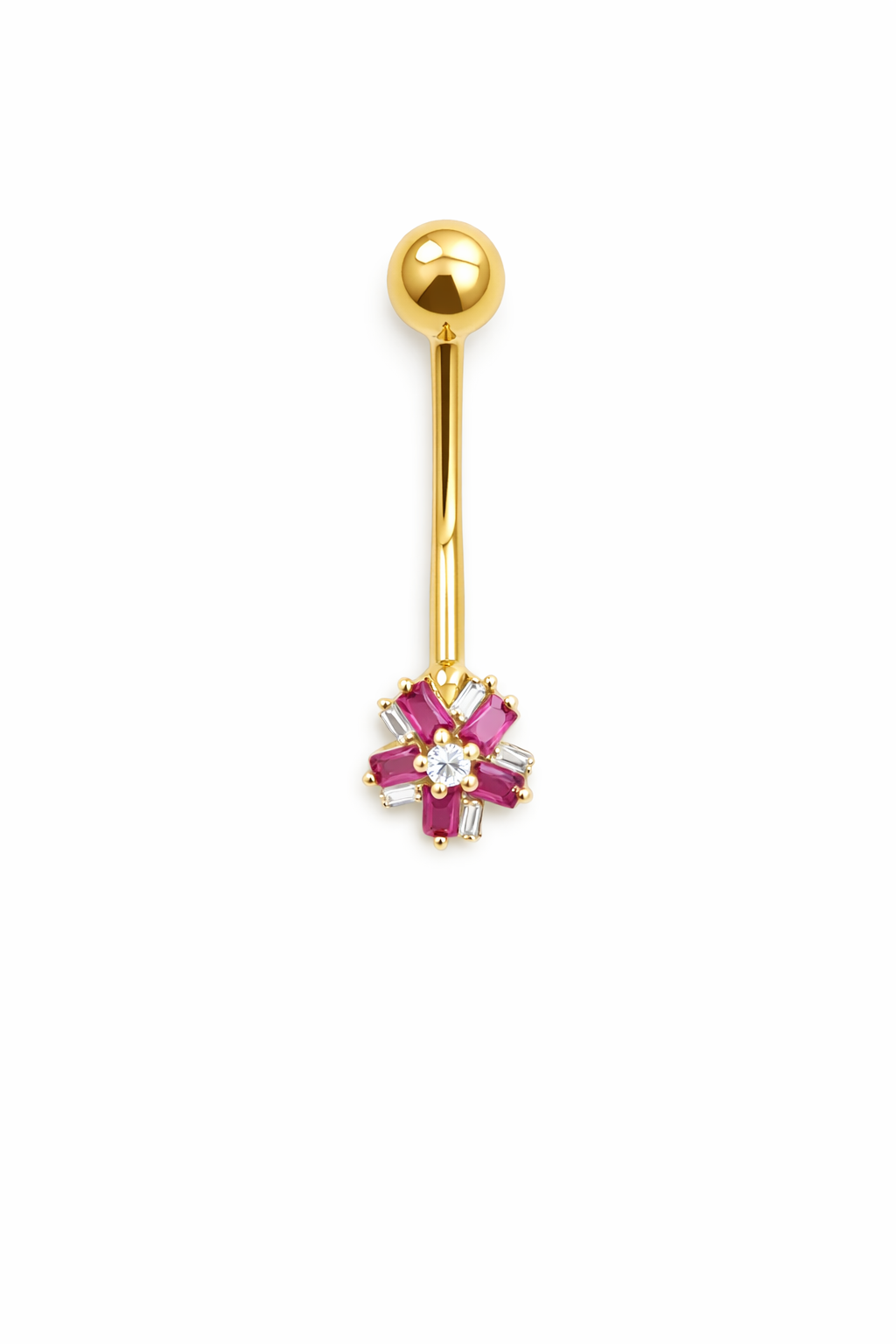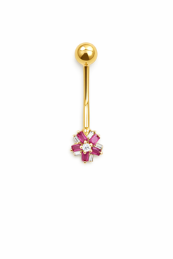 14K Belly Piercing Round Ruby CZ Baguette Belly Piercing