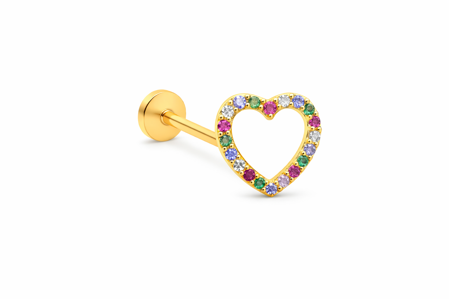 14K Cartilage Piercing Open Heart Colorful CZ