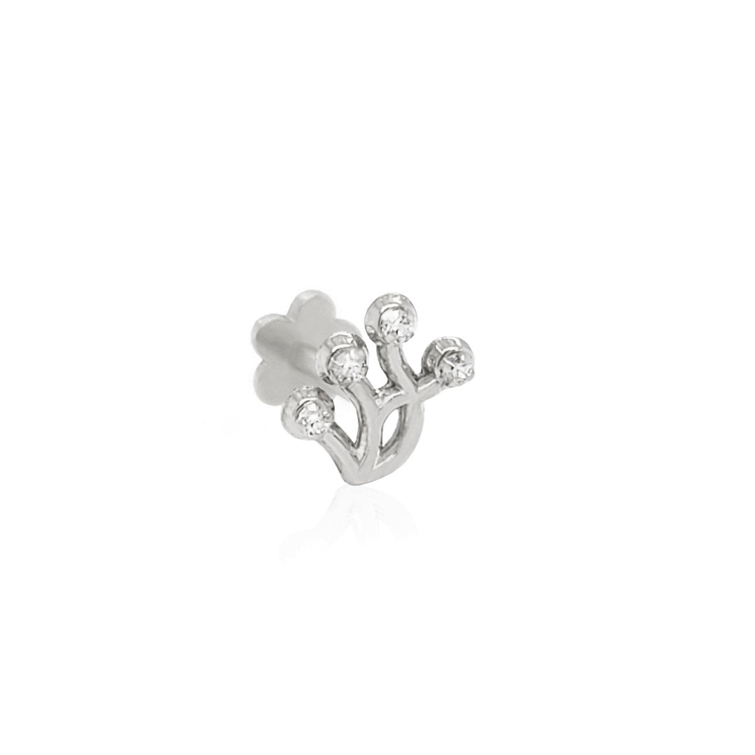 14K Cartilage Piercing White Gold Spider Web With CZ