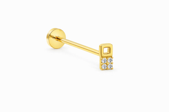 14K Cartilage Piercing Double Square One With CZ and Other Plain Open