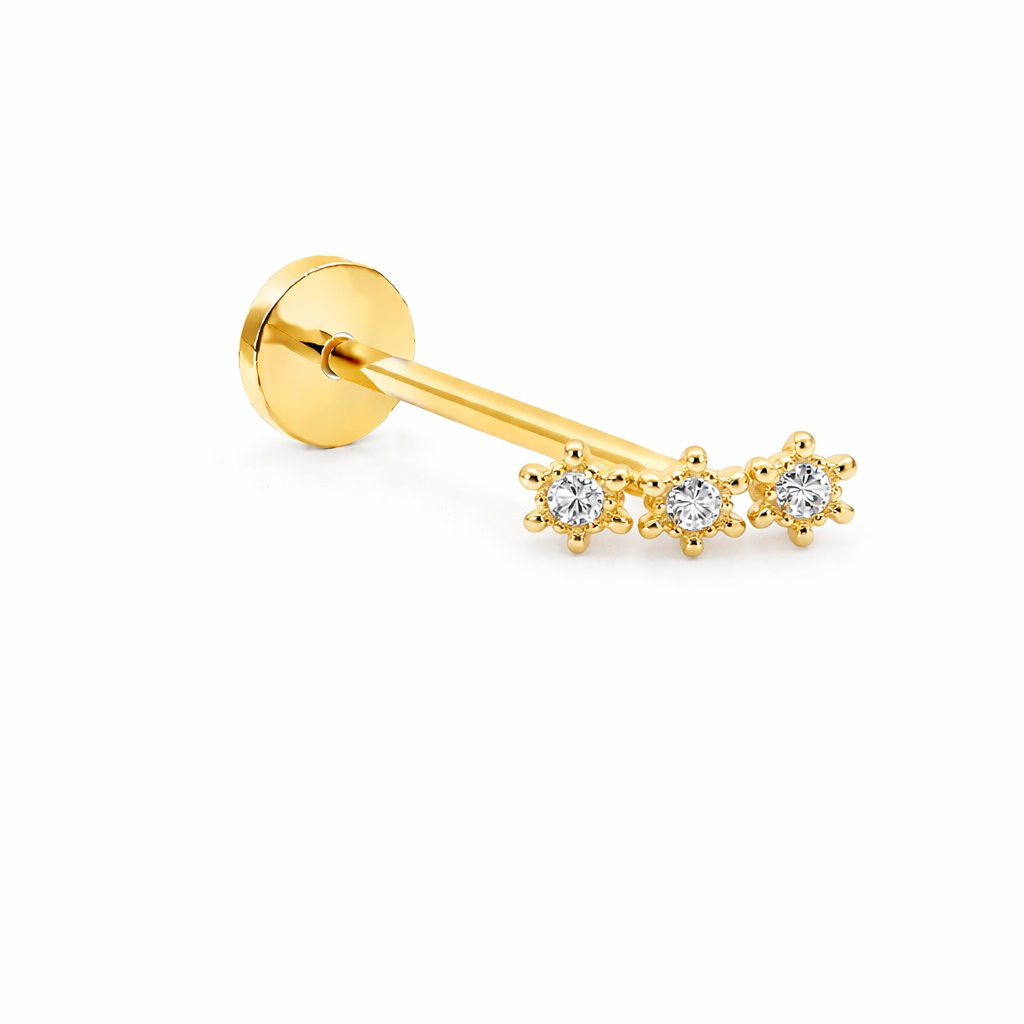 14K Cartilage Piercing Triple Daisy Flower Cluster 6.5MM