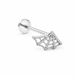 14K Cartilage Piercing White Gold Spider Web With CZ