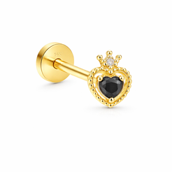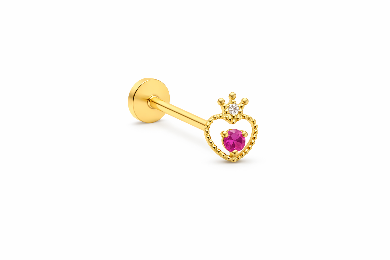 Heart with a Rubi CZ in the Middle with a Crown and a White CZ in the Middle 14K Cartilage Piercing