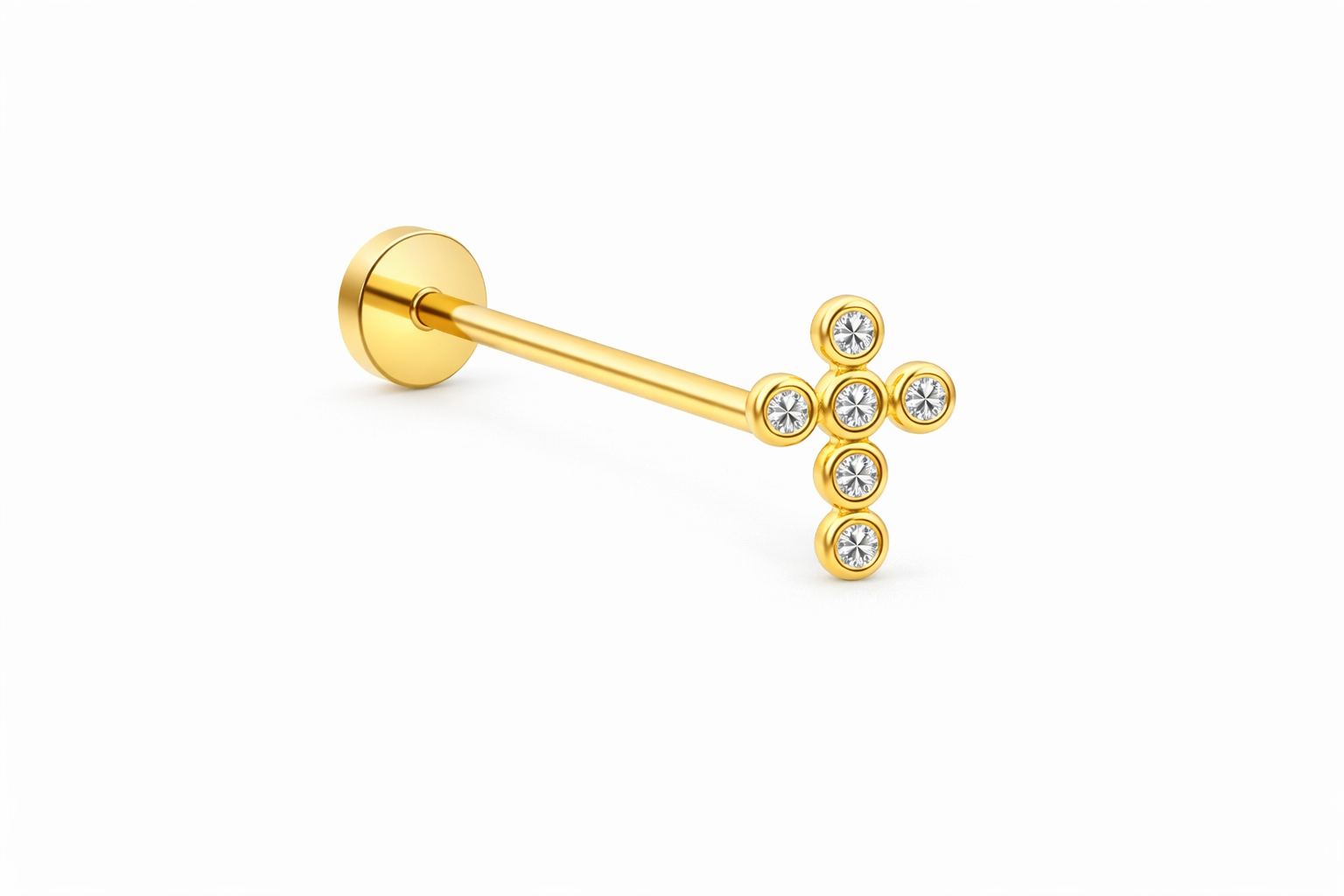 14K Cartilage Piercing Cross Bezel CZ 6.5mm