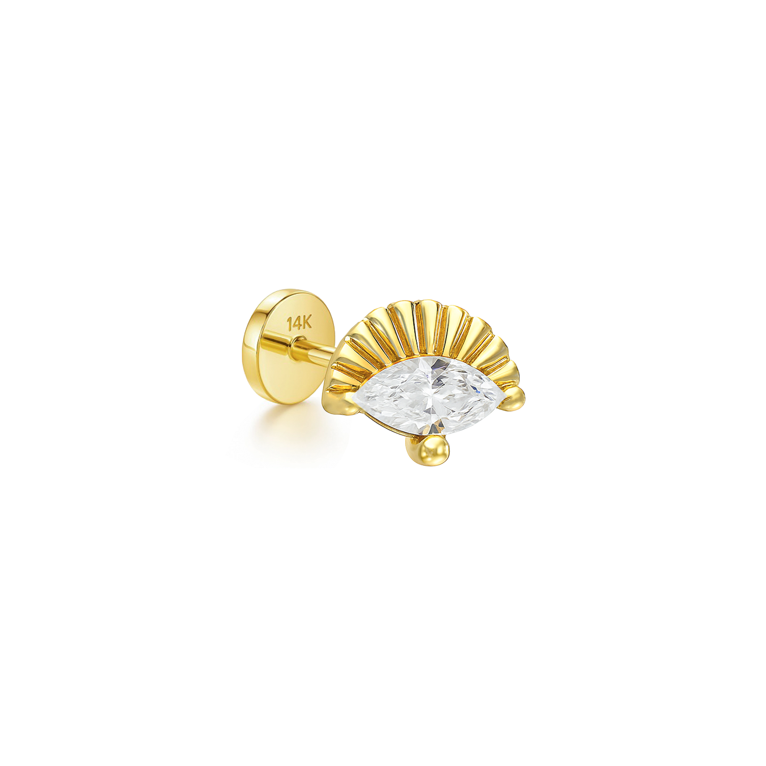 14K Cartilage Piercing Fan-shaped with Rhombus CZ