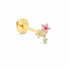 14K Cartilage Piercing Double Flower CZ with Dangling Tear Drop CZ