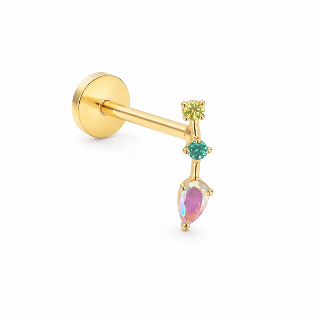 14K Cartilage Piercing Trio of Colors: Emerald, Aquamarine & Pink Opal