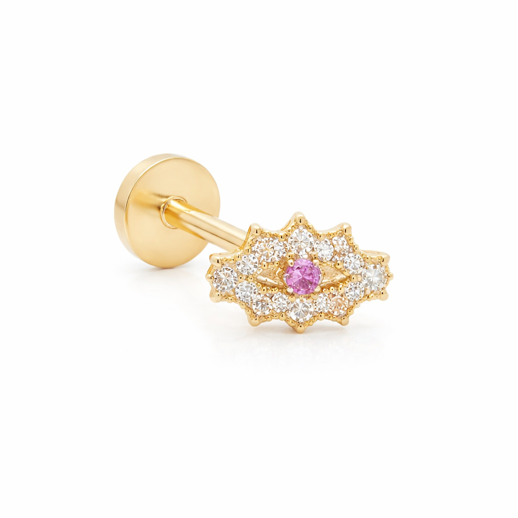14K Cartilage Piercing Protective Eye with CZ and Lashes. Comes in Different Colors