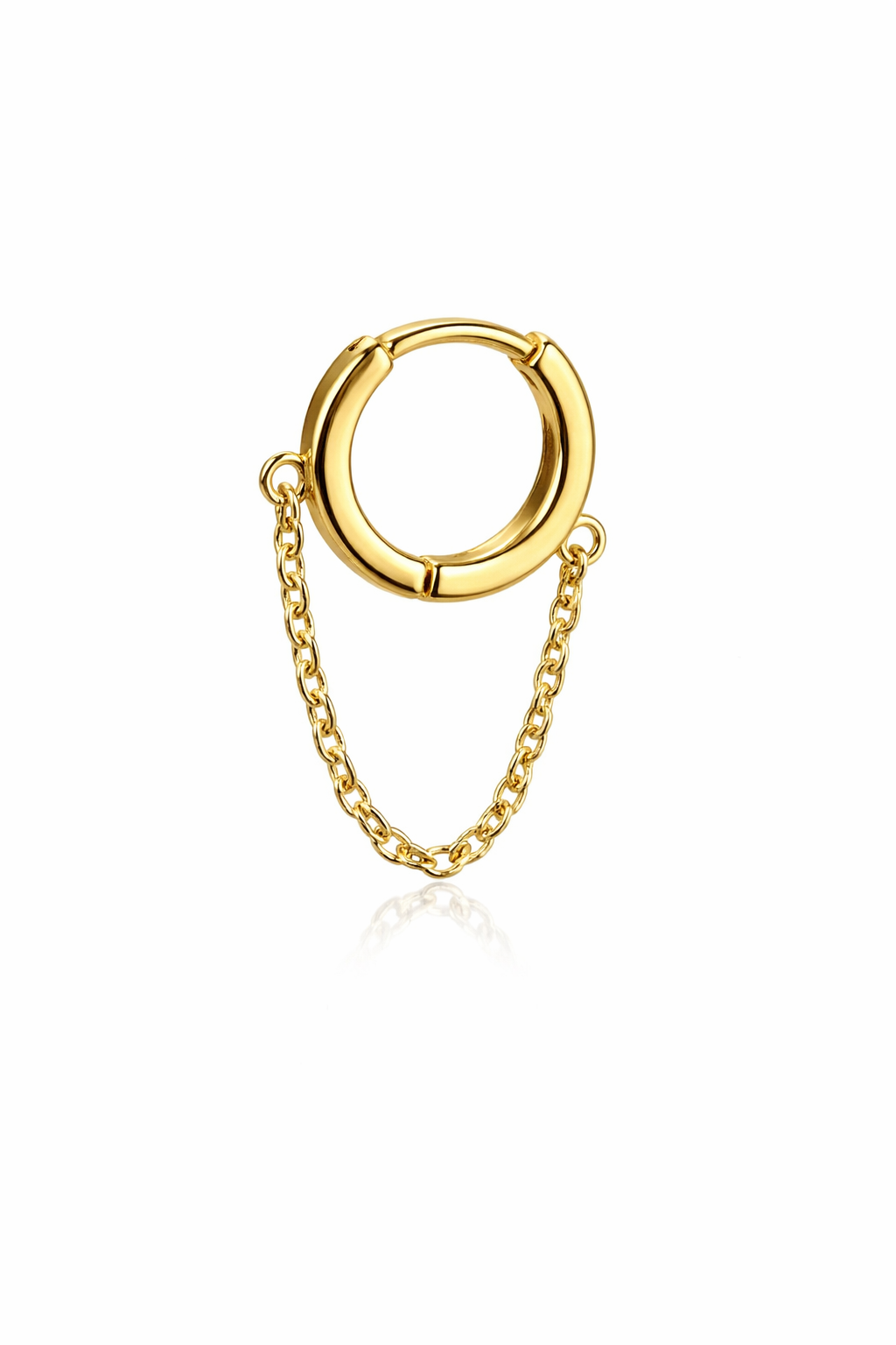 14K Single Plain Huggie with Dangling Chain