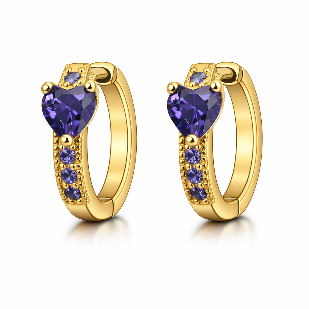 14K Huggies CZ Line with Heart CZ. Comes in Different Colors
