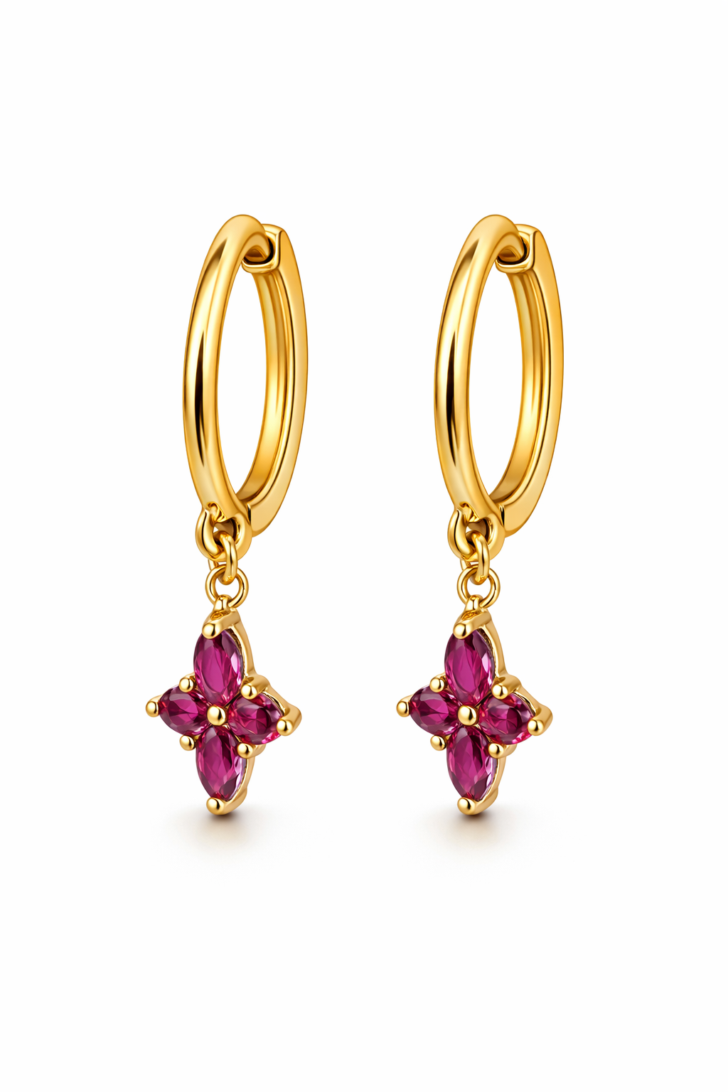14K Huggies Plain with Dangling CZ Flower