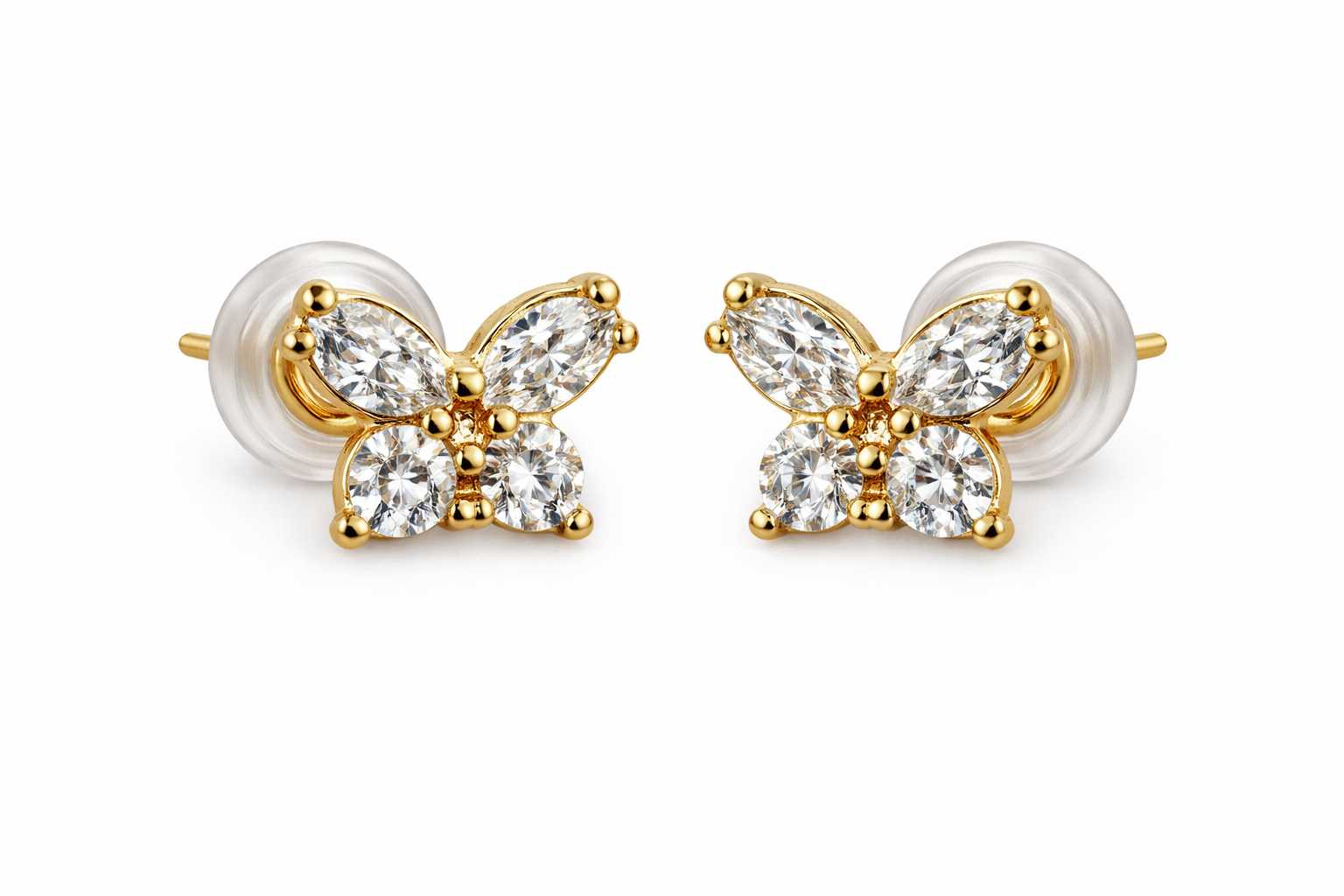 14K Push Back Small CZ Butterfly. Comes in Different Colors: White, Black, Emerald, Sapphire or Multicolor.
