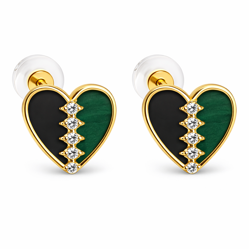 14K Push Back Enamel Heart With a CZ Line in the Middle. One Side Black and the other Side Green