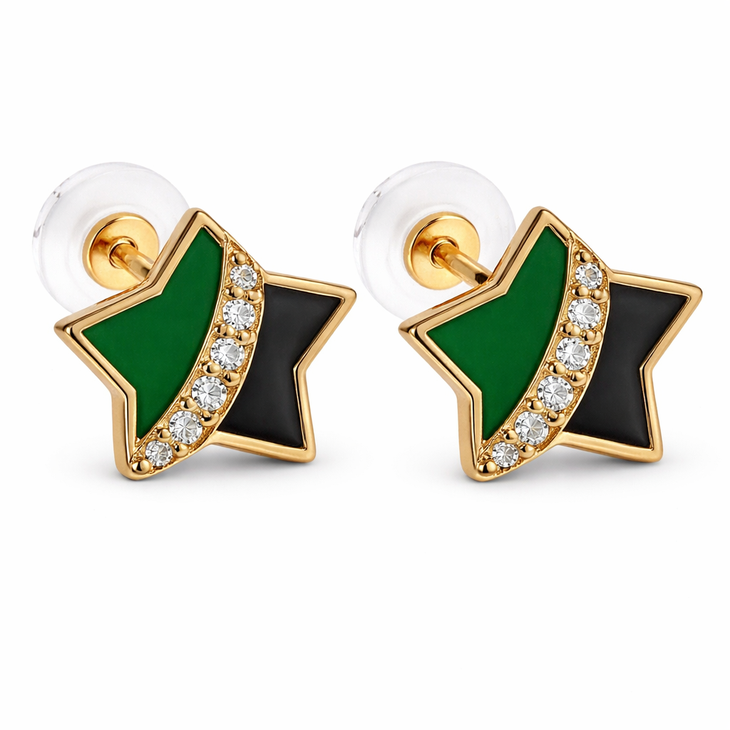 14K Push Back Enamel Star With a CZ Line in the Middle. One Side Black and the other Side Green