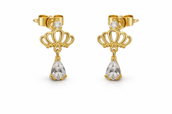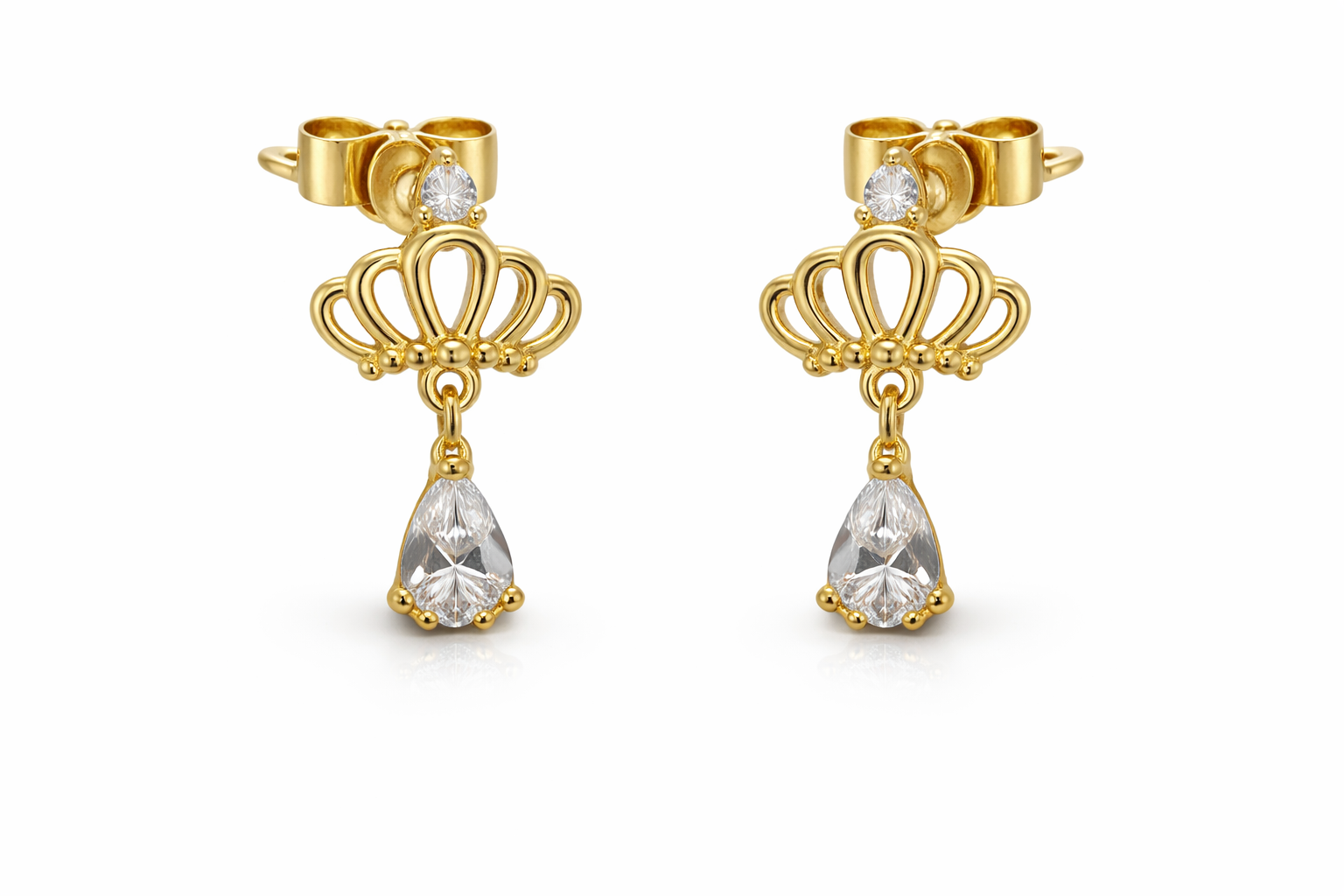 14K Push Back Plain Open Crown With Dangling CZ Drop