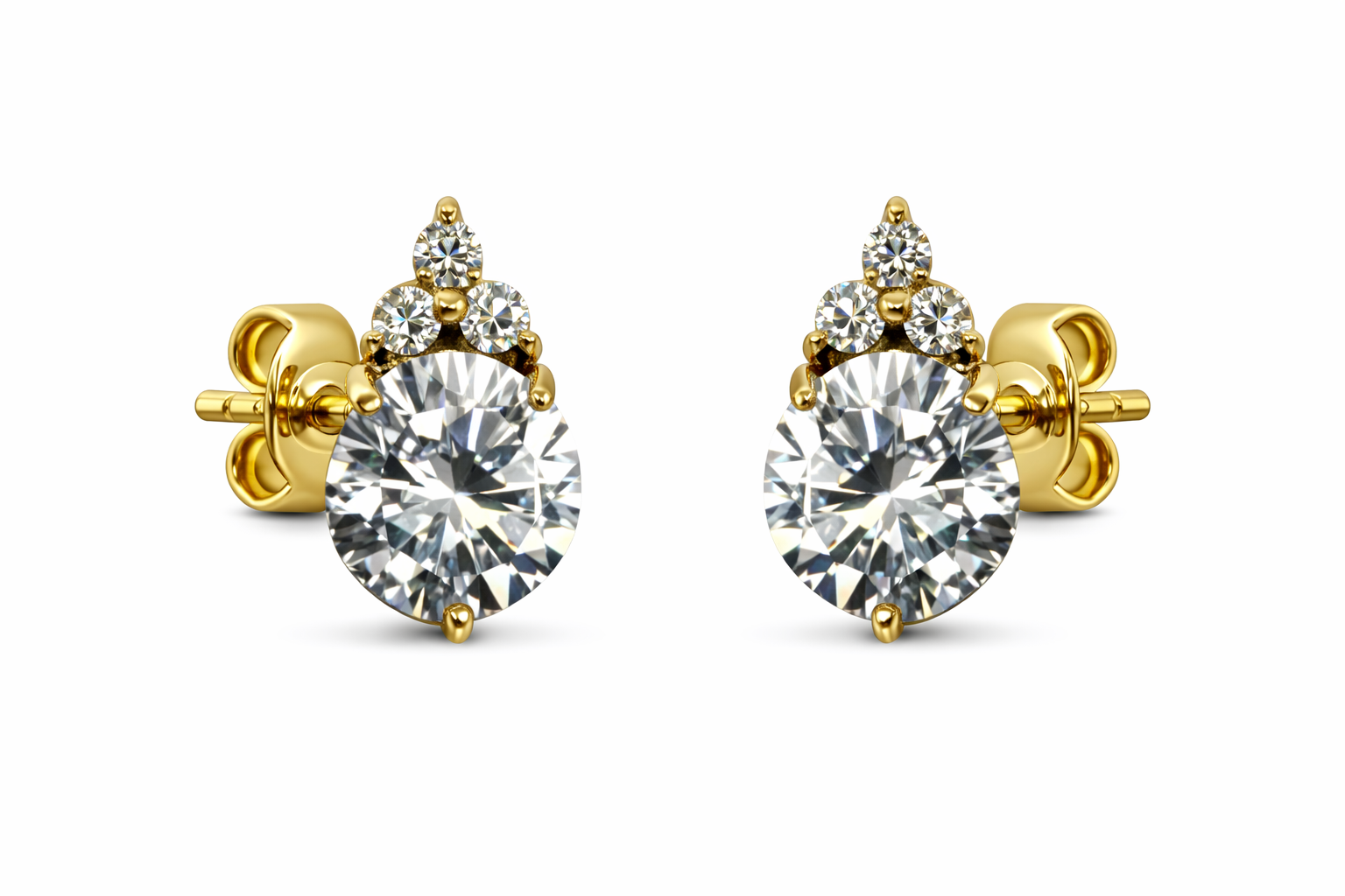 14K Push Back Round CZ on Bottom White CZ on Top