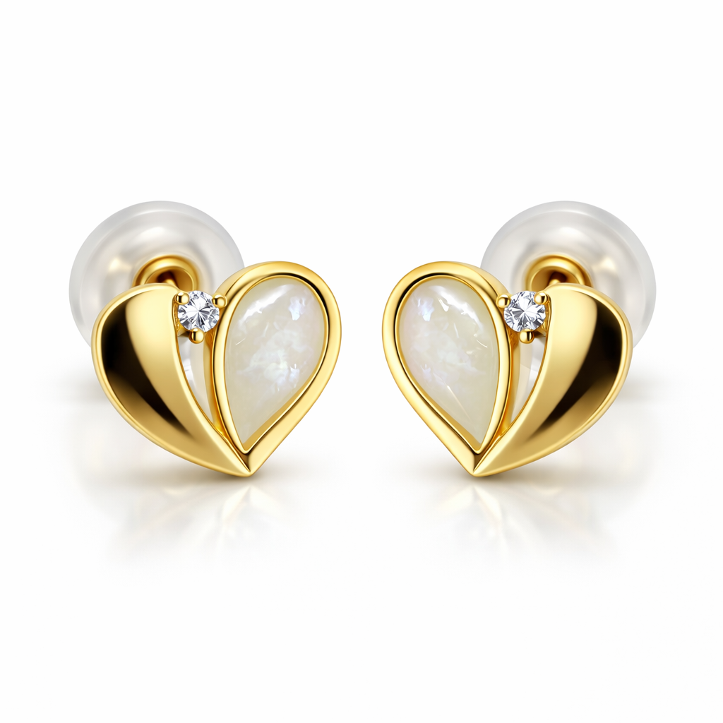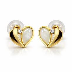 14K Push Back Mother of Pearl Half Heart and Other Half Plain