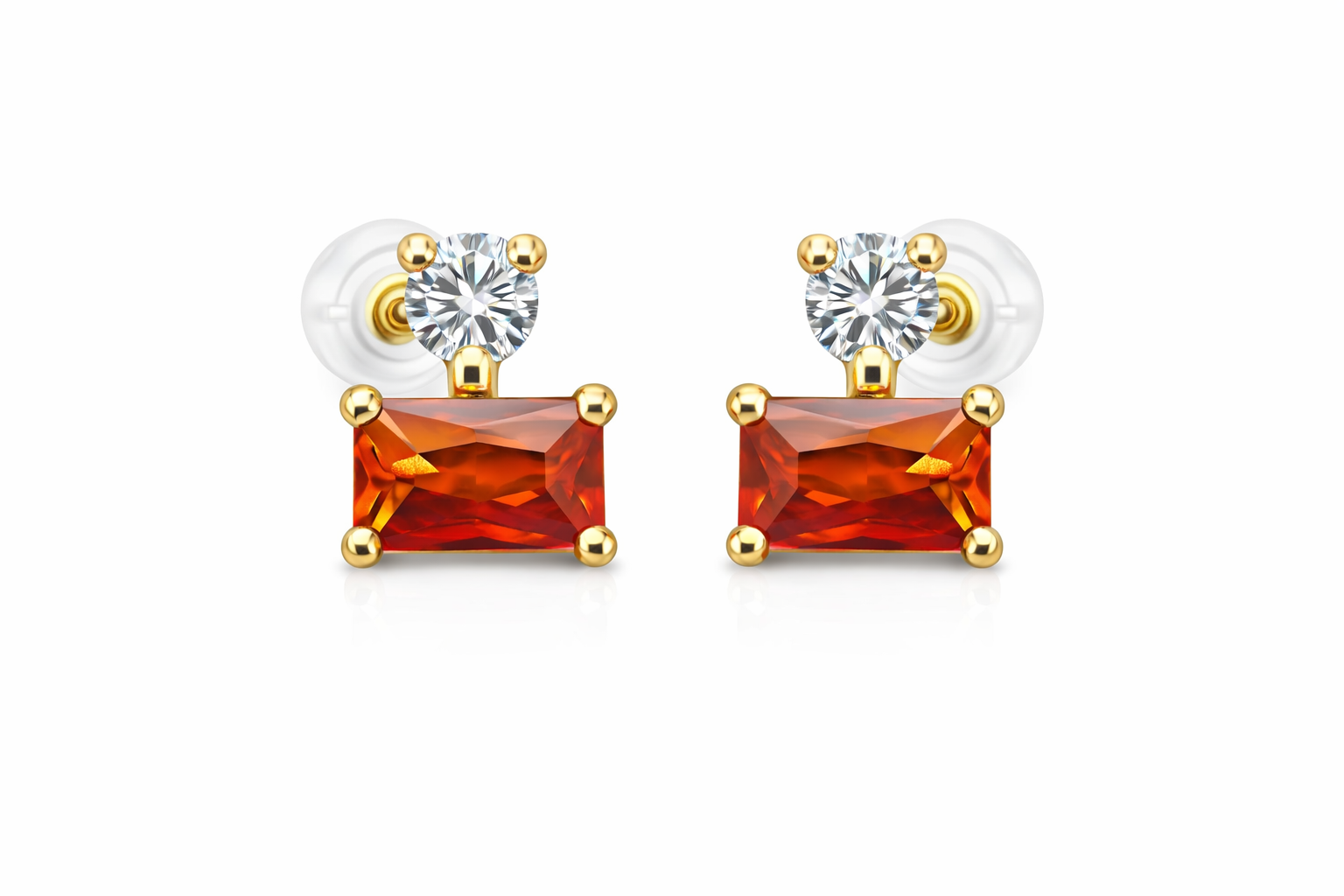 14K Push Back Small Rectangle CZ with Round ZC on Top White