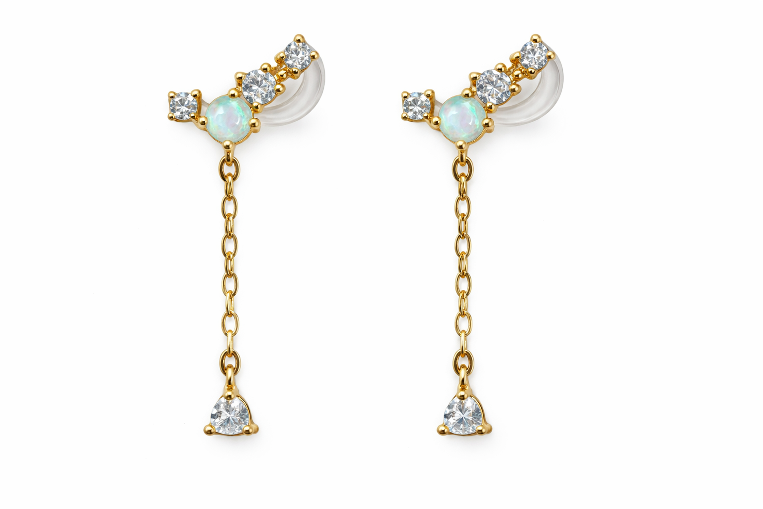 14K Push Back Crown With One Opal And Three CZ's With a Dangling Chain