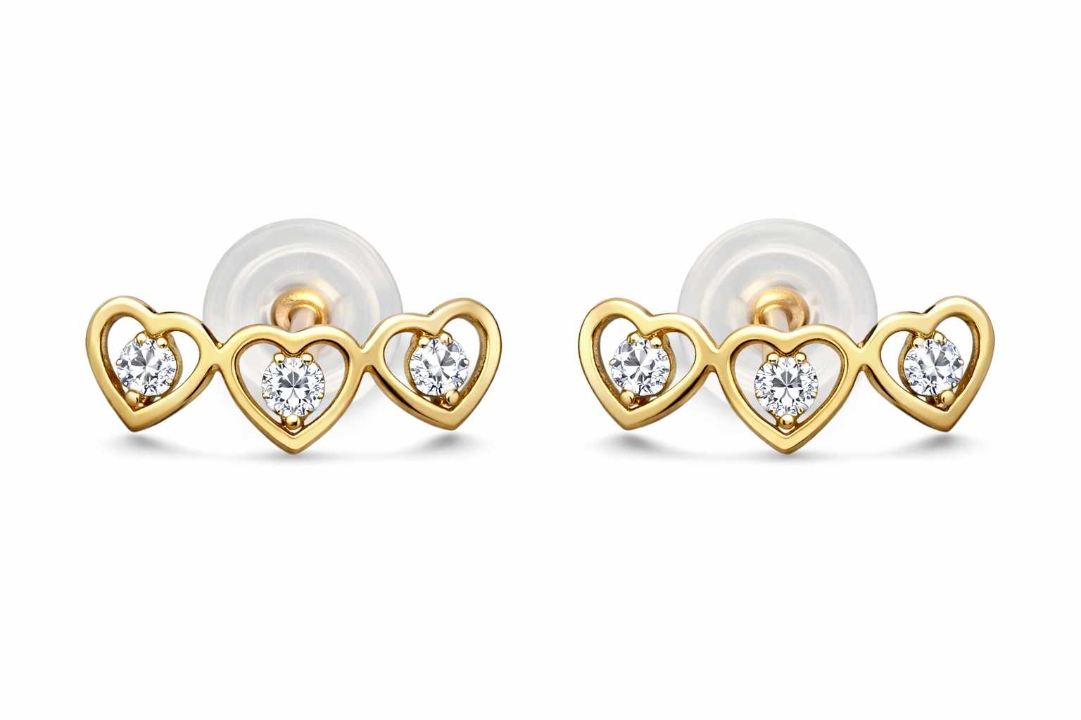 14K Push Back Trio of Bezeled Hearts With Oval CZ's Inside of the Hearts