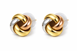 14K Push Back Rounded Three Colors: White, Rose and Yellow Gold Knot