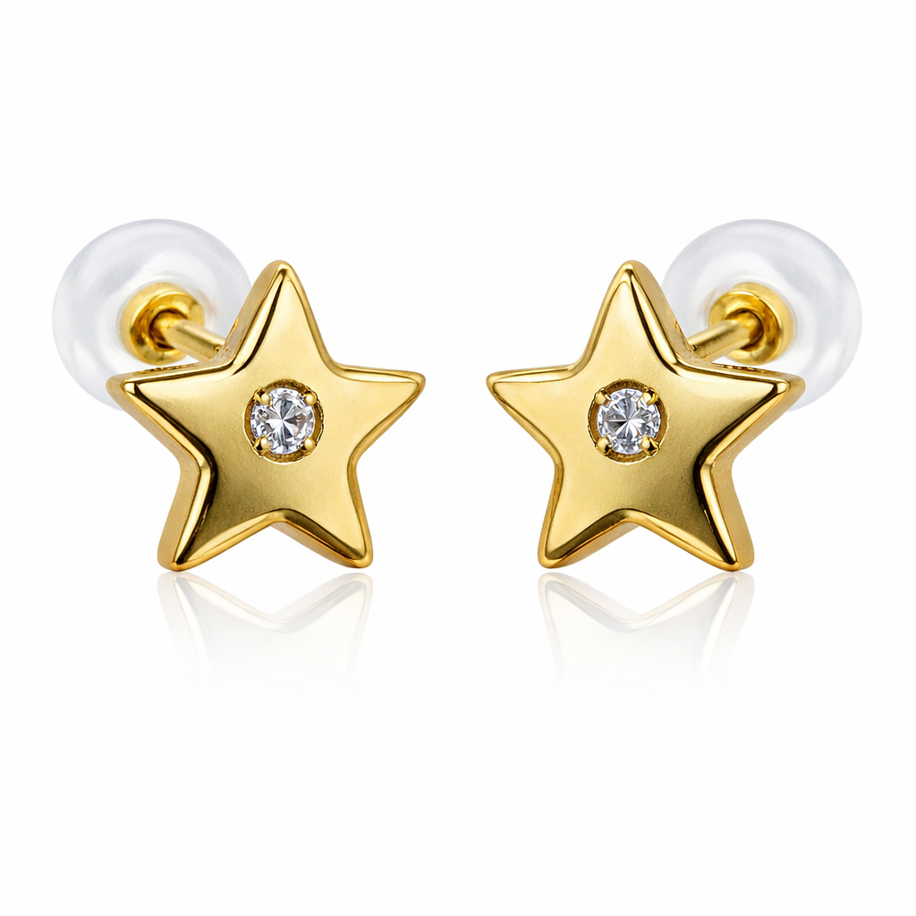 14K Push Back Extra Large Plain Puffy Star With CZ in the Middle