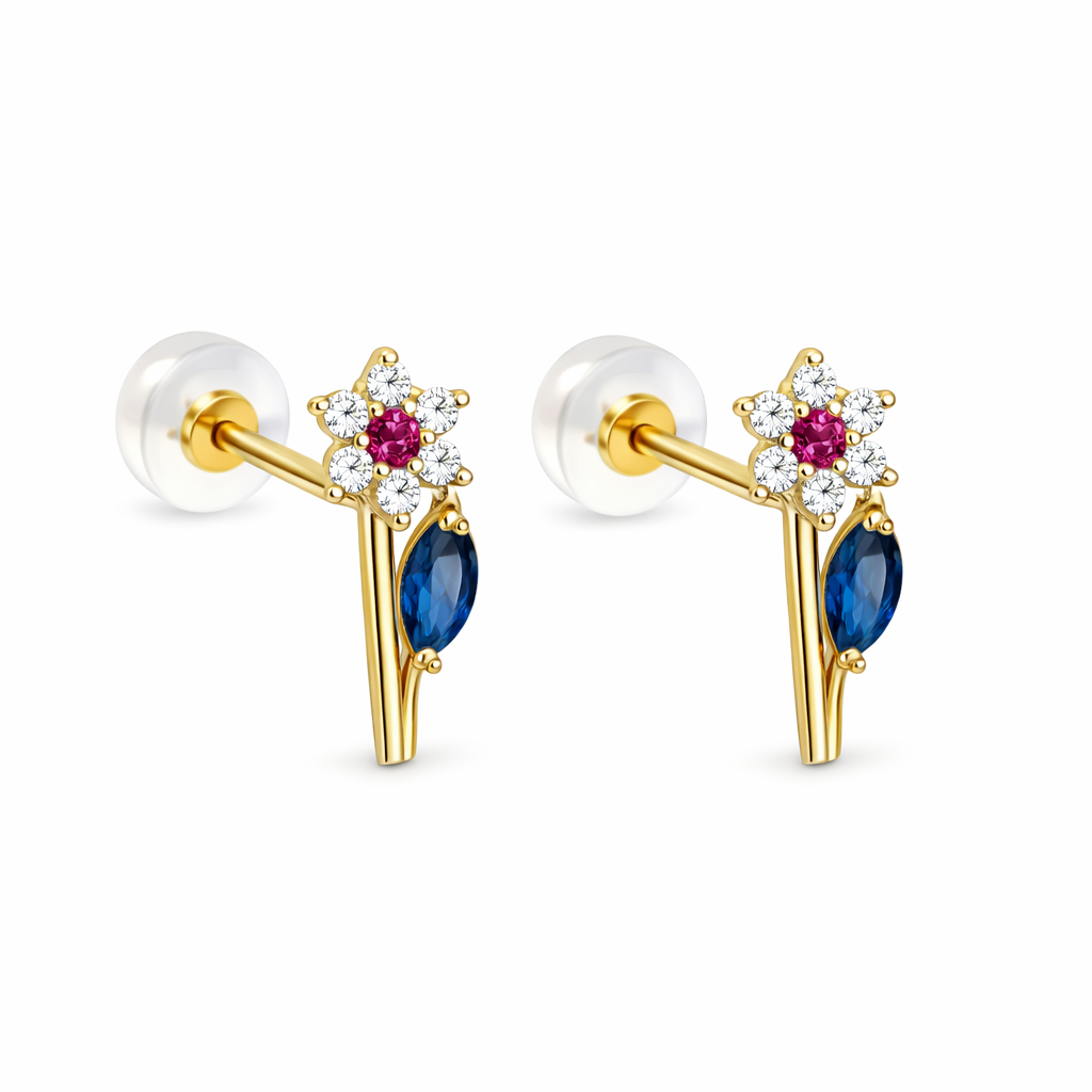 14K Push Back Full CZ Stemmed Flower
