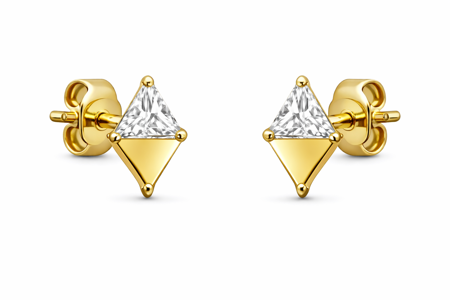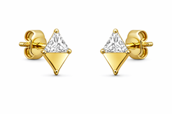 14K Push Back Diamond Shape With Triangle CZ on One Half