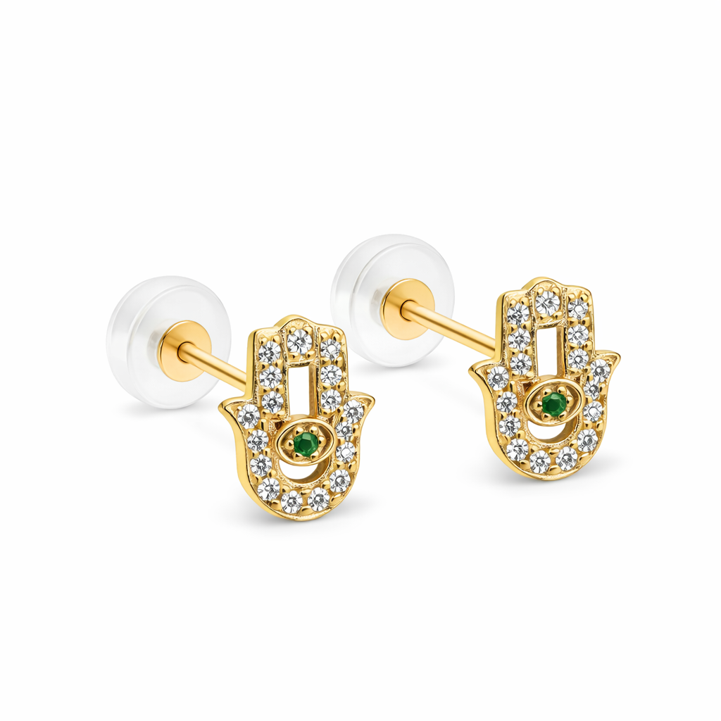 14K Push Back Large Hamsa Hand With CZ