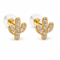 14K Push Back CZ Cactus