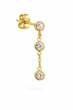 14K Push Back Single Chain 3 Round CZ Bezel with Chain