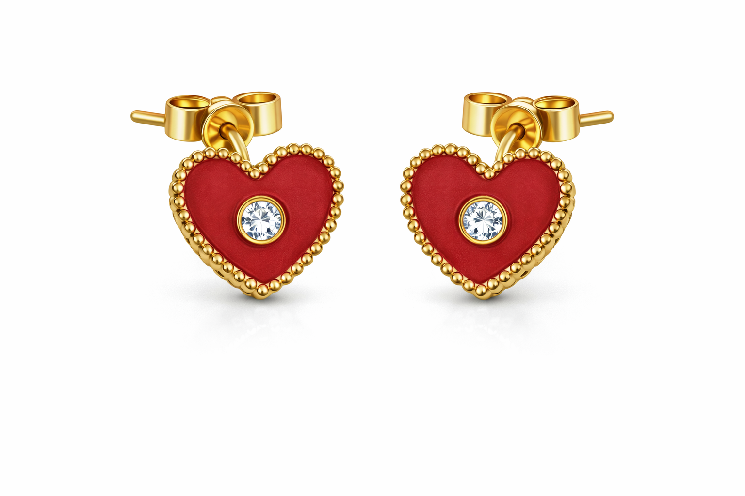 14K Push Back Bezeled Enamel Red Heart With a CZ in the Middle