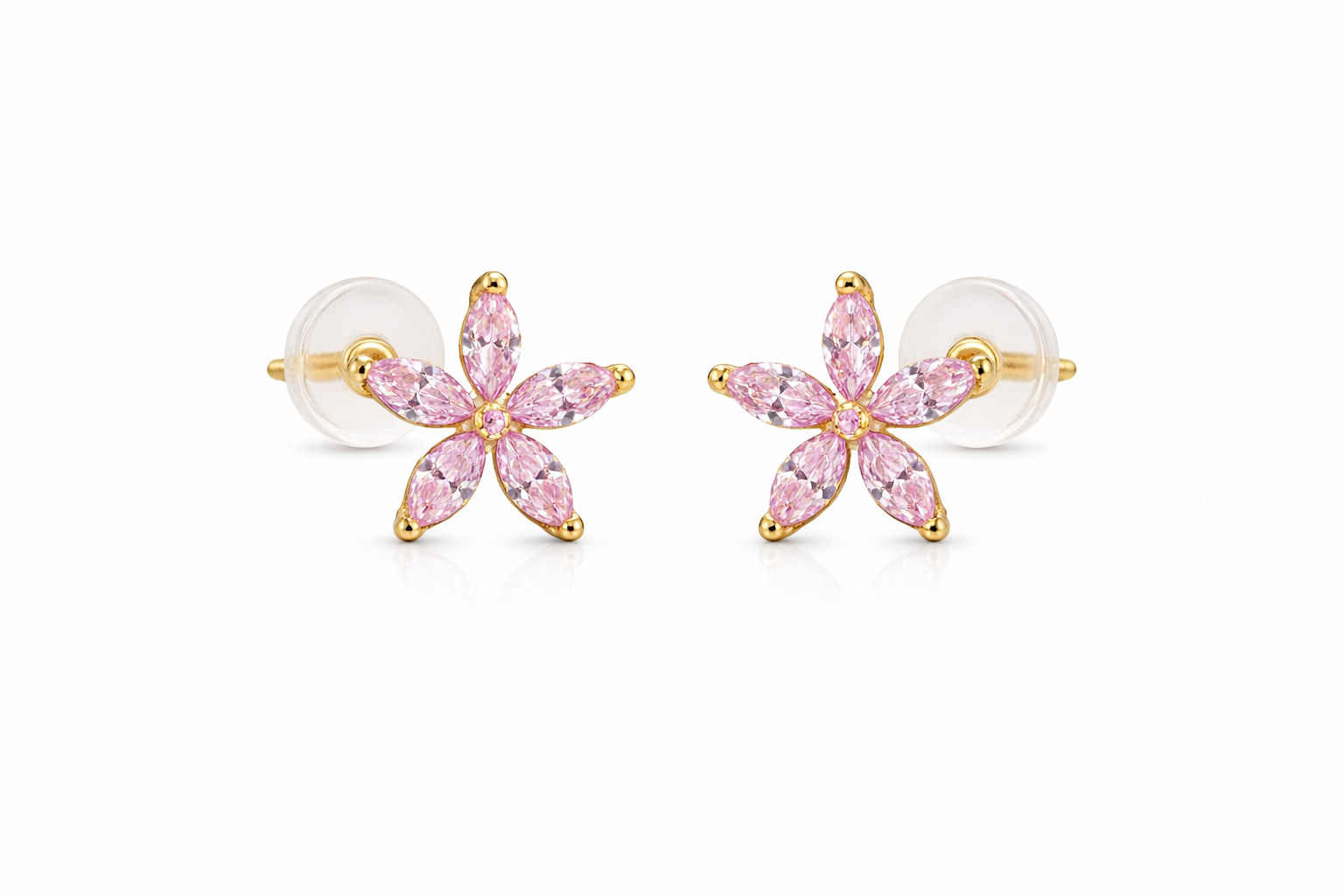 14K Push back CZ Flower Multi Color