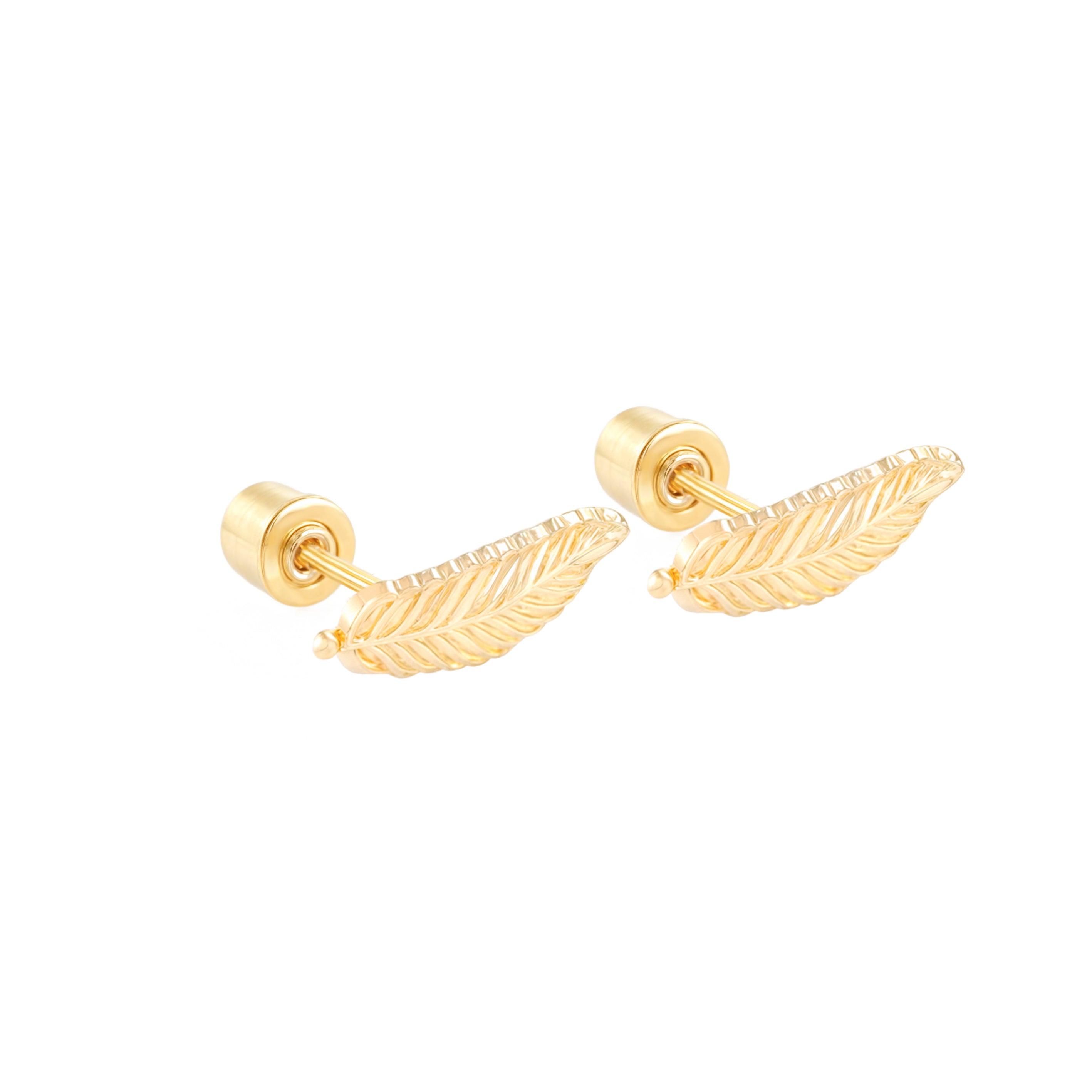 14K Korean Screw Back Plain Small Long Feather
